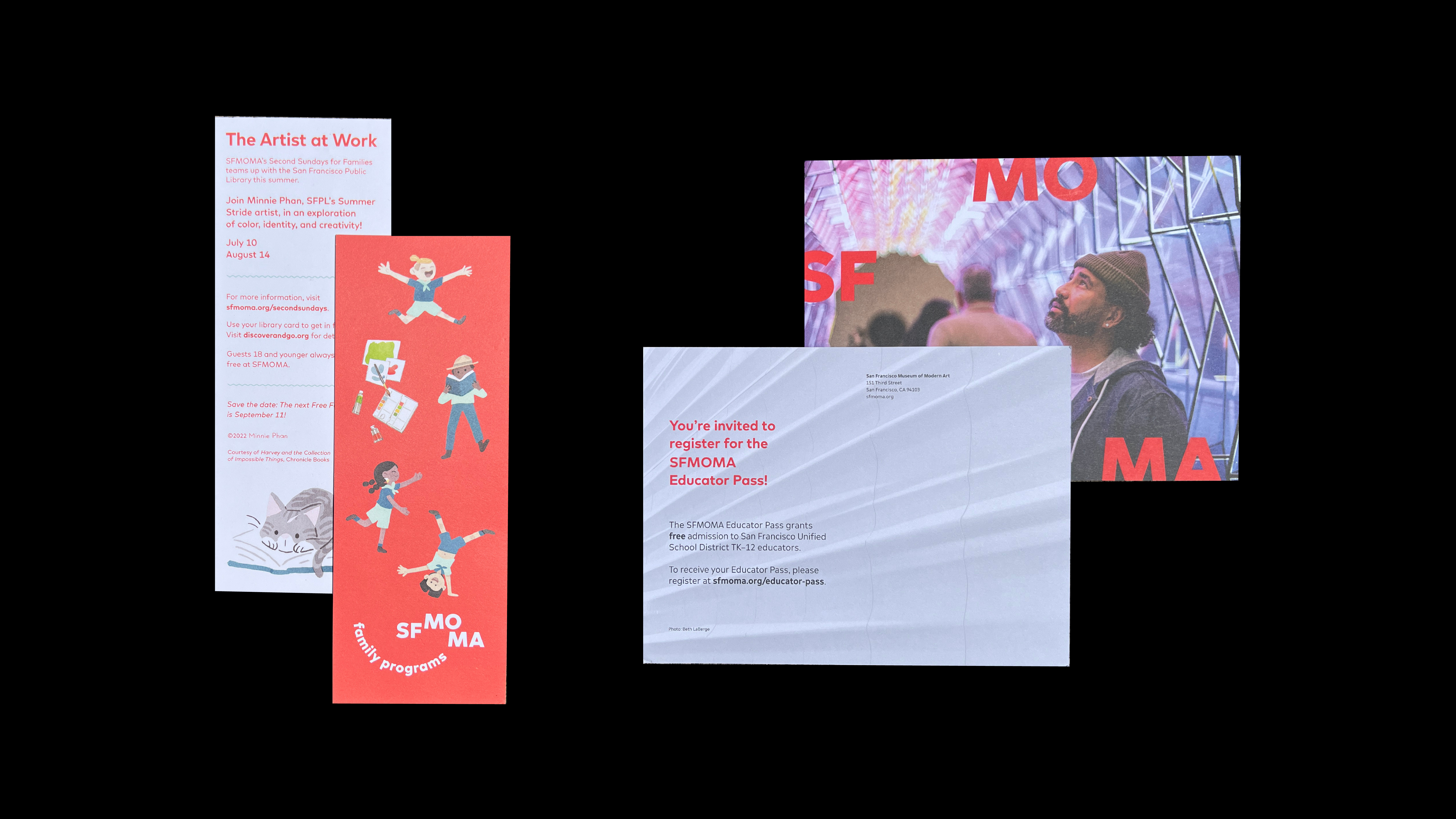 During my time at SFMOMA, I created a range of assets for the SFMOMA Design Studio to support creative service requests for the marketing, curatorial and exhibitions, philanthropy, visitor experience, and museum store departments. Our work focused on boosting visibility, increasing visitor attendance, and fostering brand growth through extensive cross-departmental collaboration.